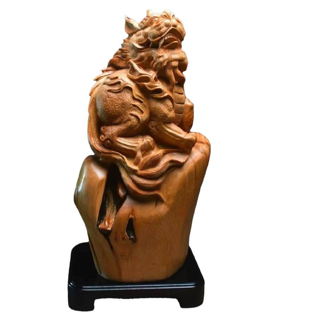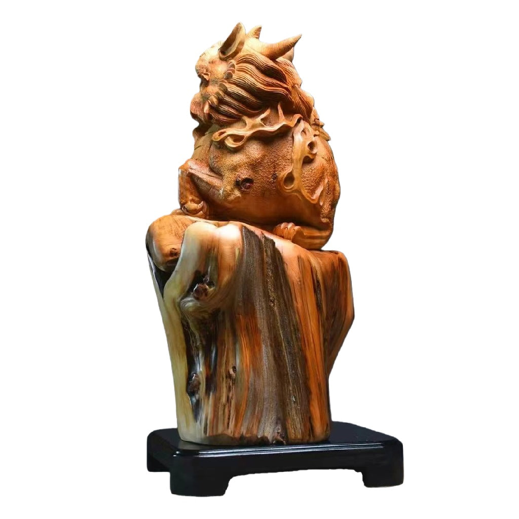 天然木 職人手彫り 木彫像「貔貅(ひきゅう)」- 大型室内装飾品